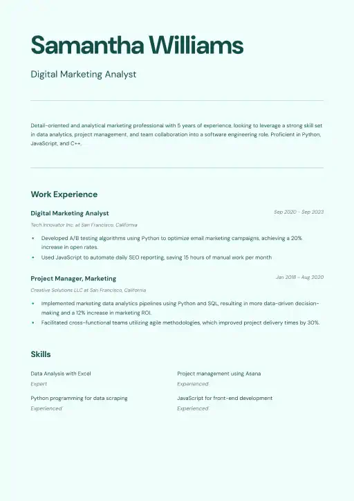 Create professional resumes in minutes with a smart AI builder and 200+ customizable templates.